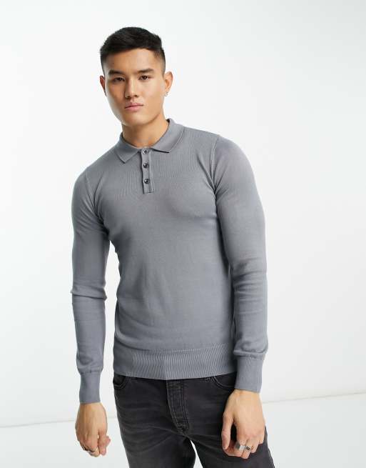 Gianni Feraud button up knit jumper in light grey