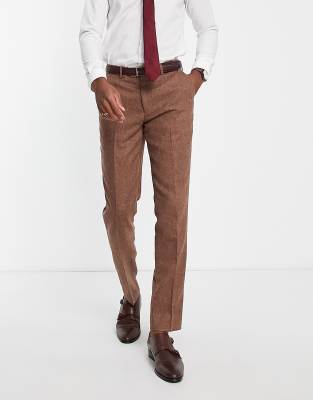 Gianni Feraud wedding slim fit herringbone wool blend suit trousers