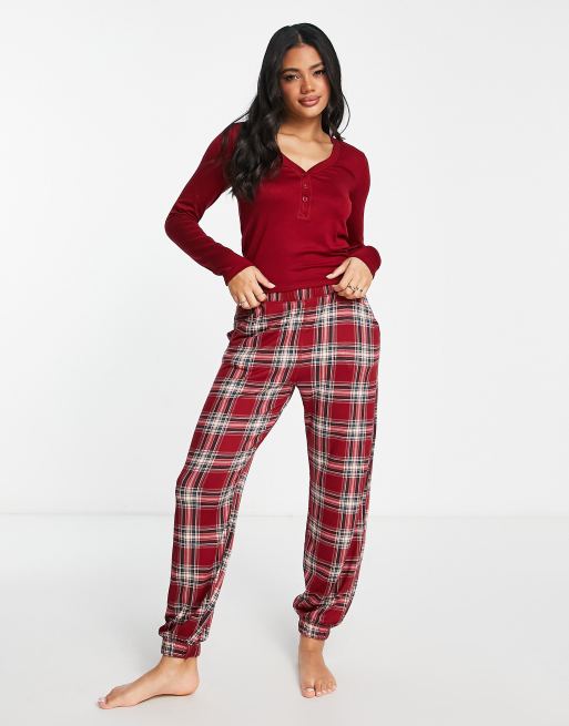 Gilly Hicks cosy long sleeve and jogger sleep set in red check