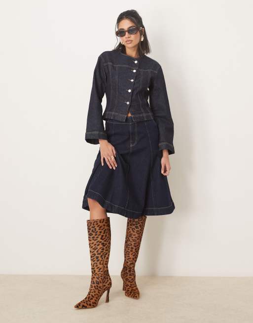 Gina Tricot co-ord strech denim jacket and jeans rinse wash indigo
