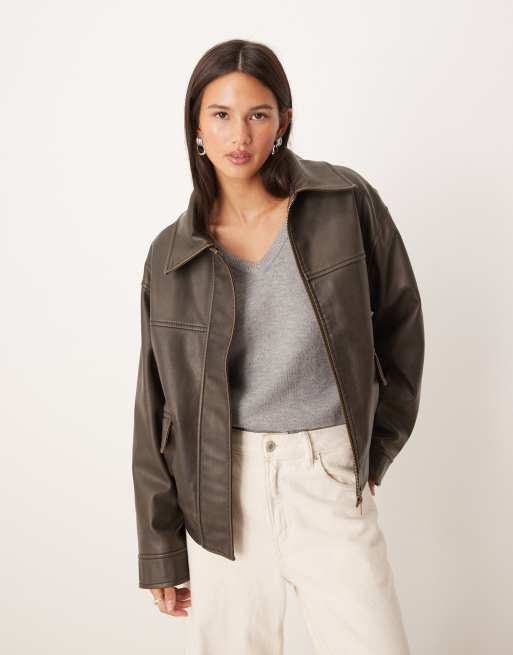Gina Tricot distressed PU short jacket in dark brown