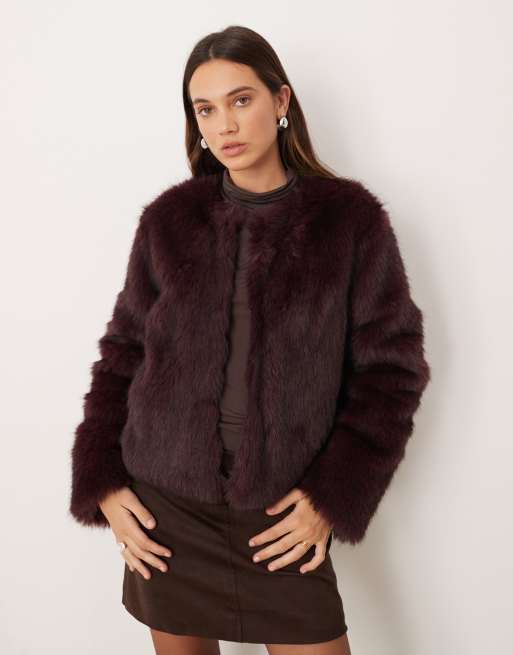 Gina Tricot faux fur short jacket in burgundy