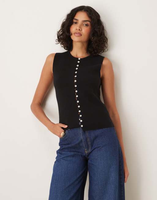 Gina Tricot knitted button down vest in black