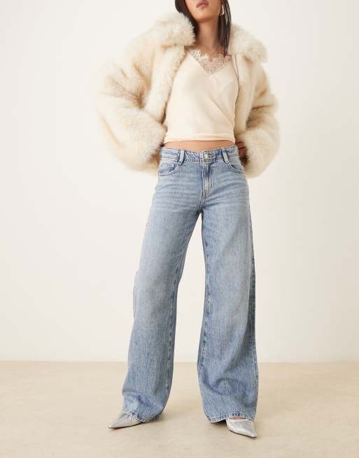 Gina Tricot mid waist embellished jeans in midwash blue