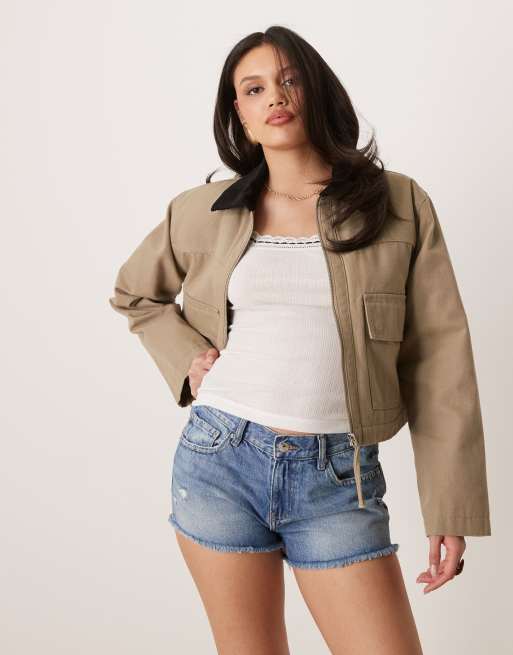 Gina Tricot raw hem distressed look denim shorts in midwash blue
