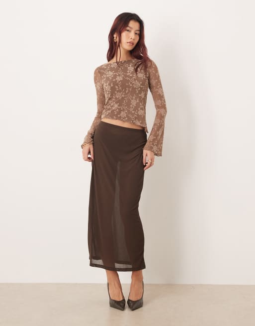 Gina Tricot sheer midi skirt in brown