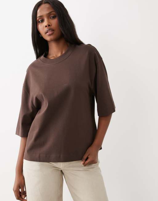 Gina Tricot short sleeve boxy tee in brown