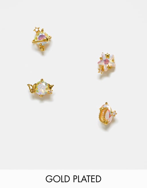 Girls Crew Andromeda 18k gold plated stud set with irridescent stones