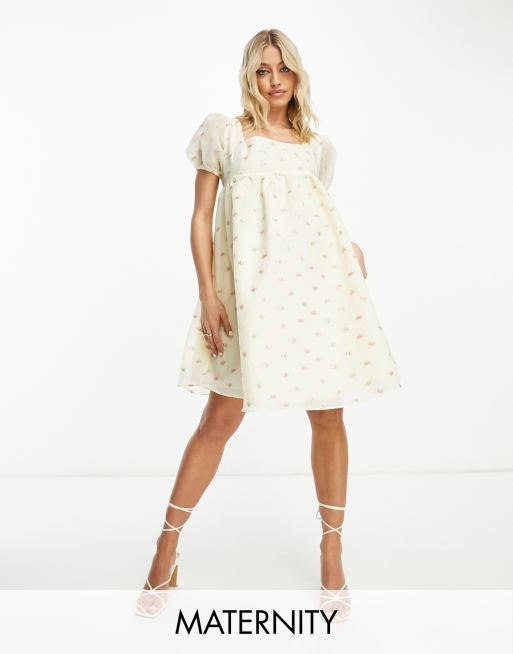 Glamorous Maternity square neck mini smock dress in yellow ditsy organza