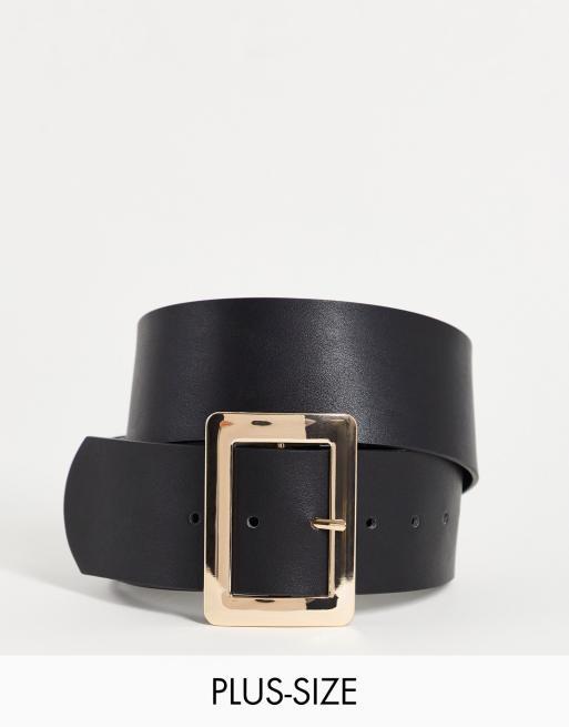 Glamorous Curve Exclusive waist & hip belt in black PU with square gold buckle