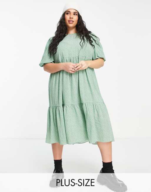 Glamorous Curve midi smock dress with tie back in meadow ditsy