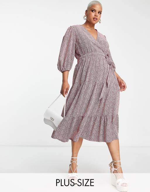 Glamorous Curve wrap midi dress in red leopard print