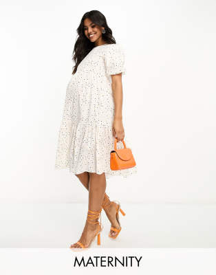 Glamorous Maternity tie back short sleeve tiered smock dress in multi spot