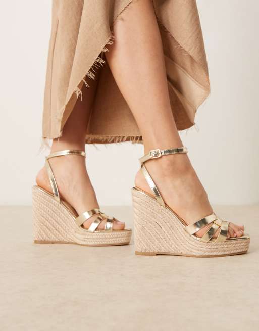 Glamorous Wide Fit espadilles wedge heeled sandals in gold
