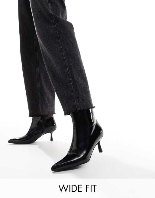 Glamorous Wide Fit kitten heel ankle boots in black crinkle