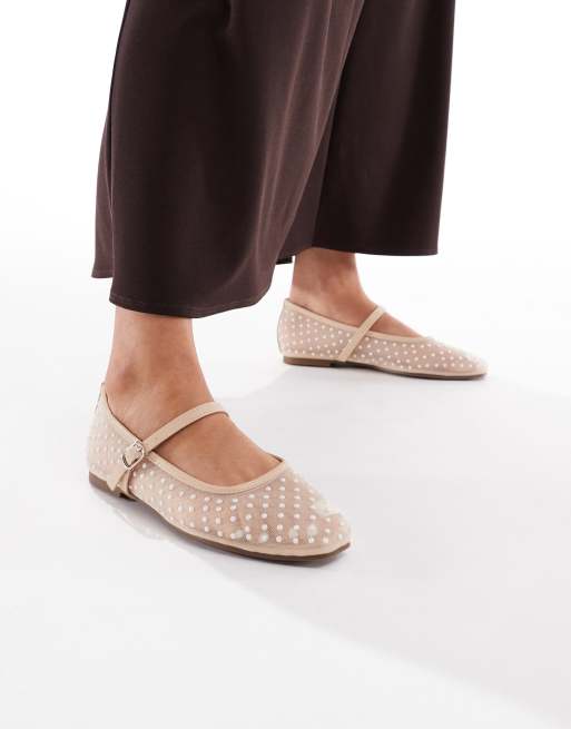 Glamorous ballerina flats in mesh beige polkadot