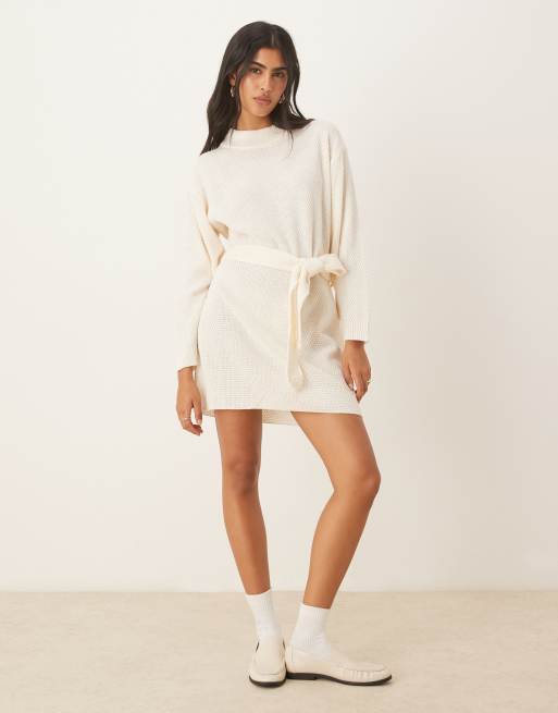 Glamorous Belted mini jumper dress in bone