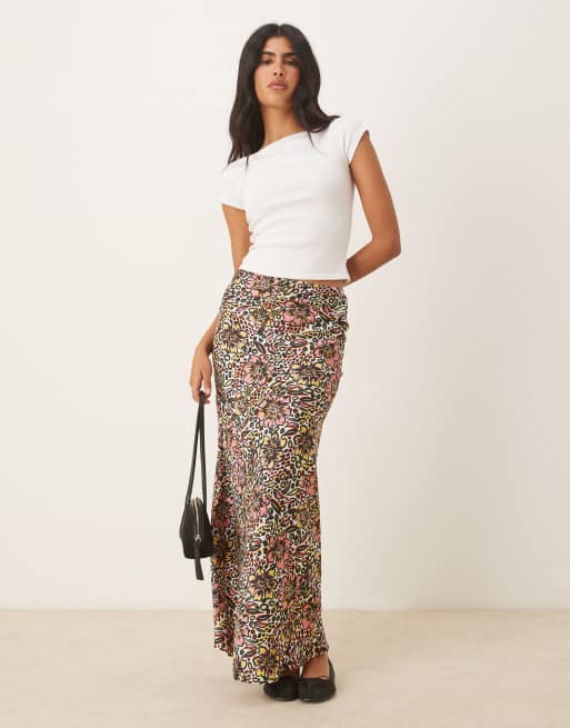 Glamorous Bias cut midi skirt in retro abstract floral