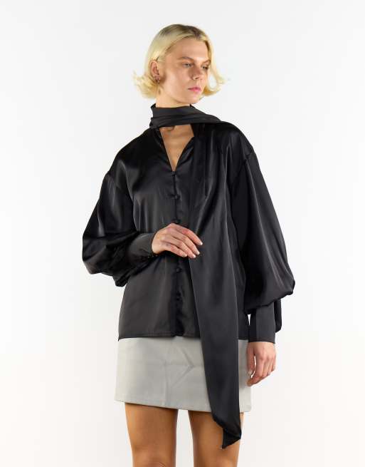 Glamorous Blouse With Tie-Neck Bow Detail in black