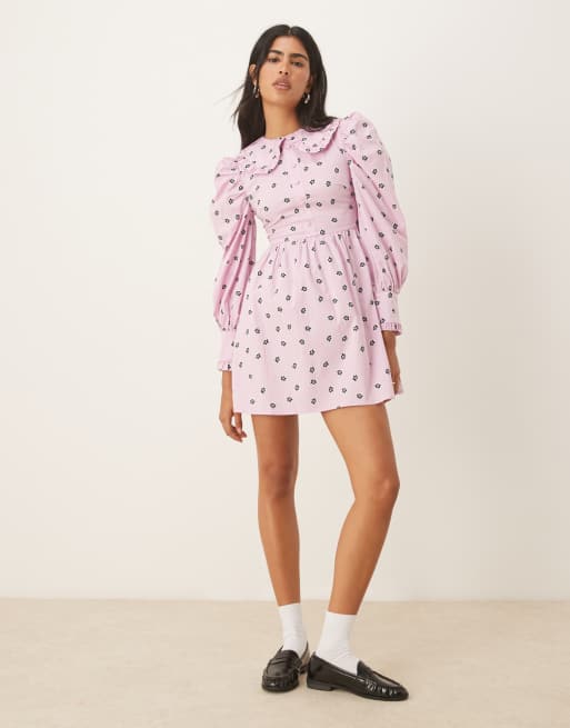 Glamorous Collared button front mini dress in pink ditsy cotton