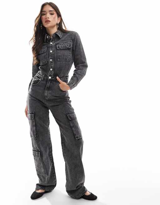 Glamorous denim boiler suit in black stonewash