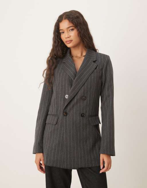 Glamorous Double Breasted Blazer in dark grey pinstripe