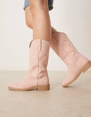 Glamorous embroidered western knee boots in pink
