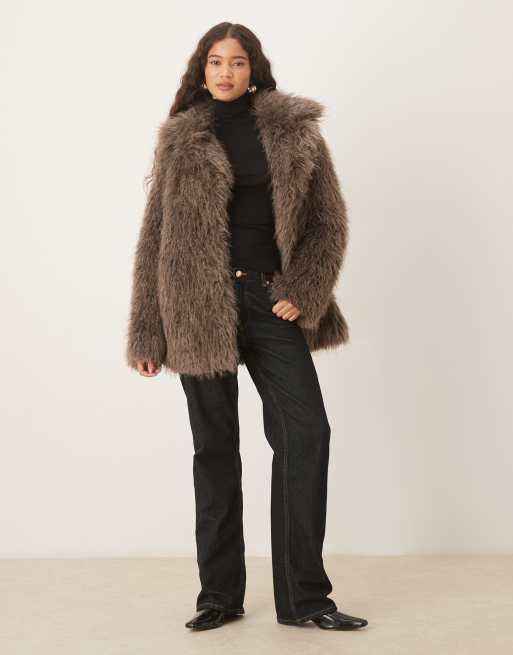 Glamorous Faux Fur Coat in grey brown