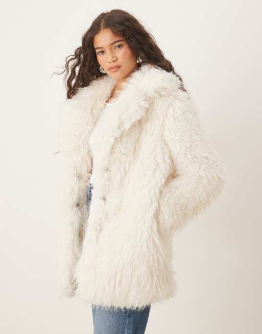 Glamorous Lapel Collar Faux Fur Coat in cream
