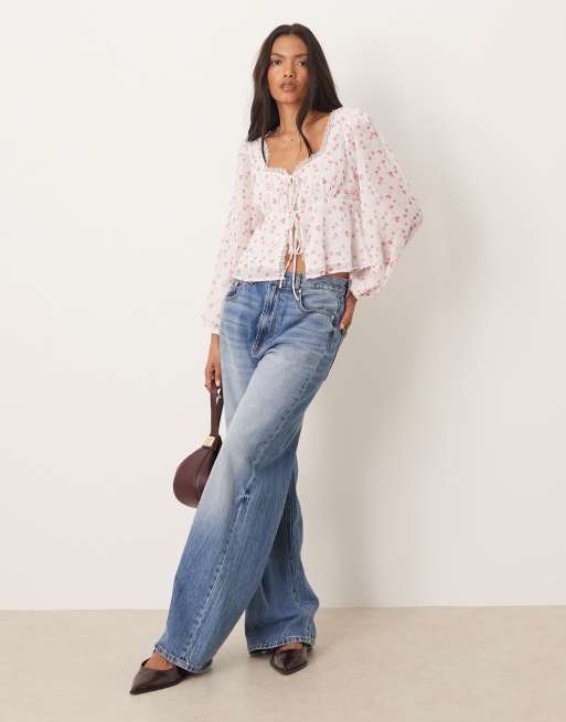 Glamorous Lond sleeves tops in pink watercolour floral