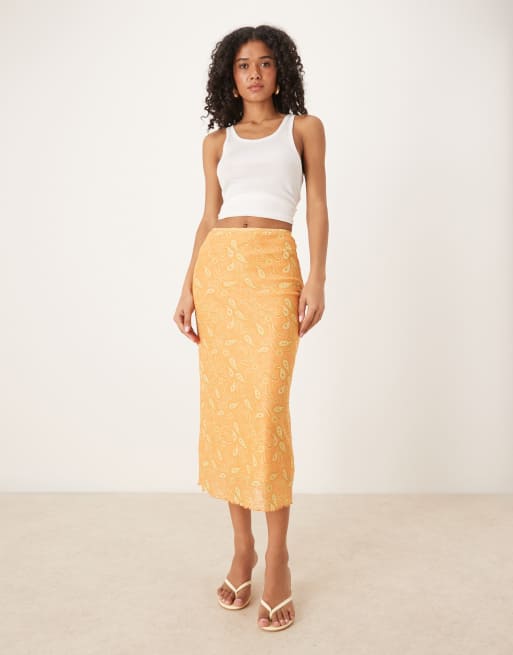 Glamorous Low rise midi skirt in orange olive paisley mesh
