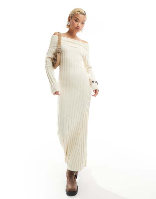 Glamorous off shoulder bodycon maxi knitted dress in cream