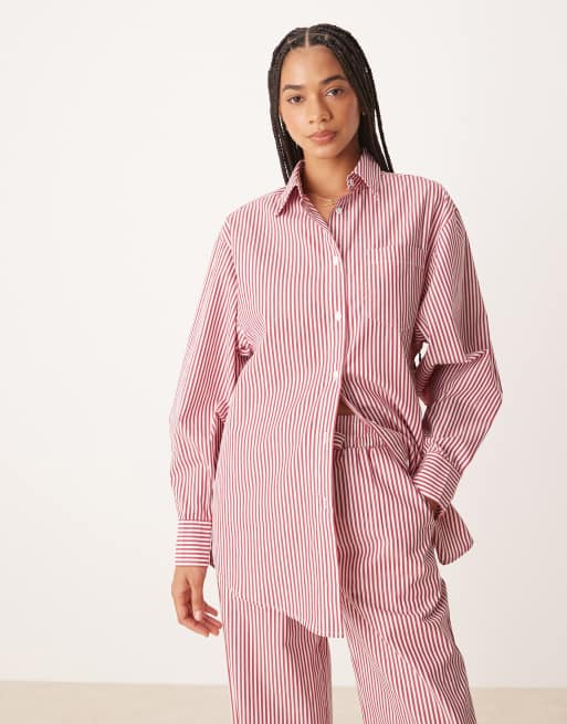 Glamorous oversized poplin shirt in red stripe co-ord