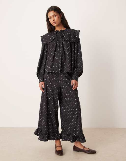 Glamorous oversized ruffle blouse in black pink polka dot co-ord