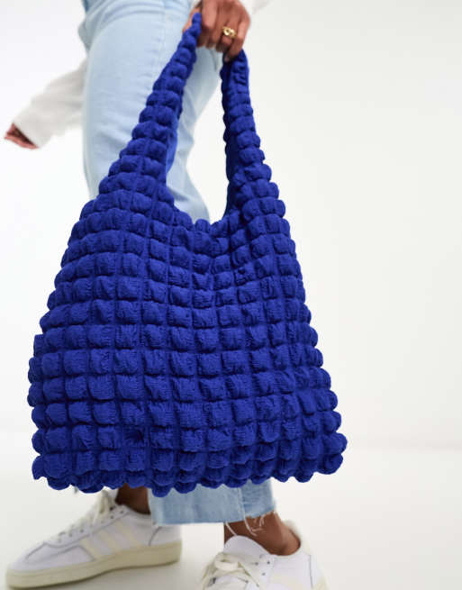 Glamorous popcorn texture shoulder bag in cobalt blue