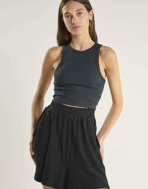 Glamorous Ribbed round-neck crop-top in black