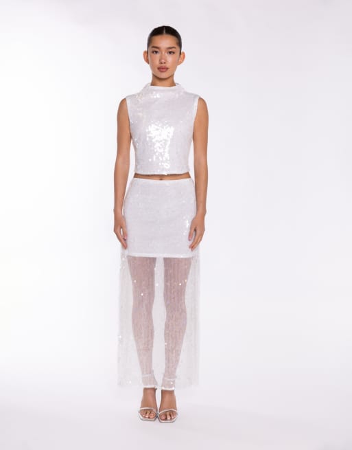 Glamorous Side-split midaxi-skirt in transparent sequin