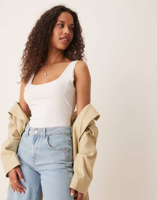 Glamorous square neck bodysuit in off white