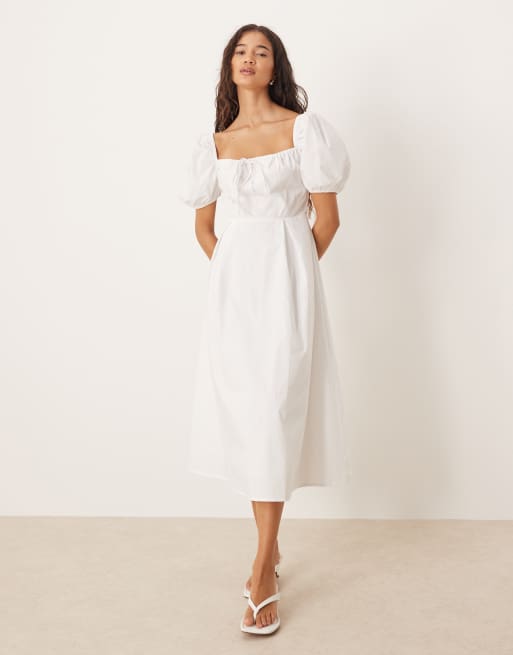 Glamorous Square neck midi dress in white