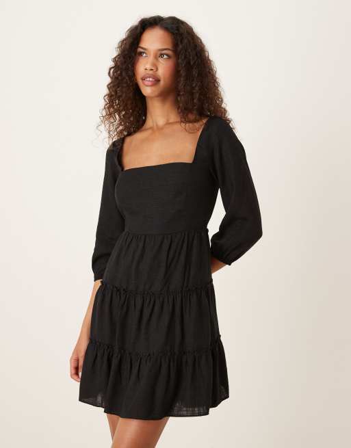 Glamorous Square neck tie back mini dress in black