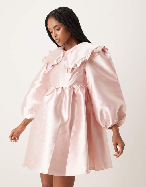Glamorous Statement collar mini dress in soft pink satin