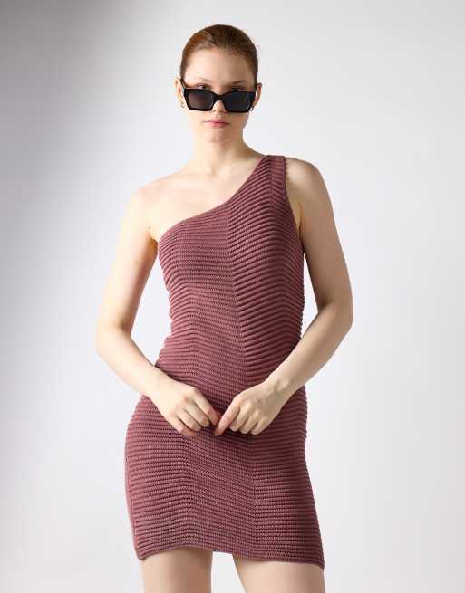 Glamorous Textured-knit midi-dress in mink