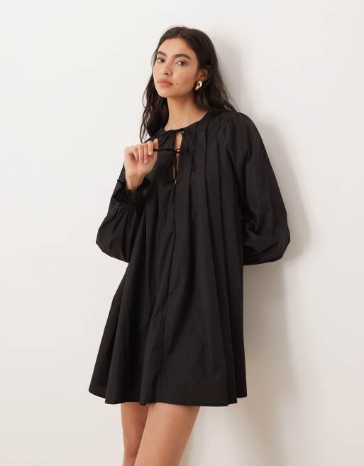 Glamorous tie front long sleeve mini dress in black