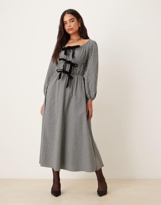 Glamorous Tie front maxi dress in black check