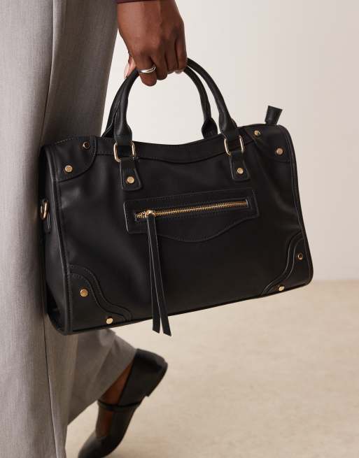 Glamorous top handle tote bag in black