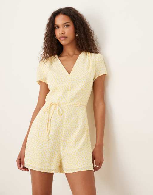 Glamorous V neck playsuit in white yellow ditsy