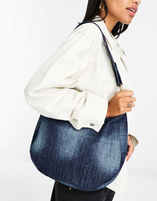 Glamorous washed denim shoulder crescent tote bag in blue