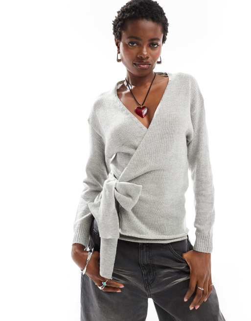 Glamorous wrap front jumper in grey marl knit