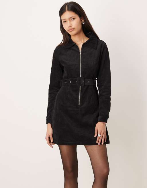 Glamorous Zipper front mini dress in black corduroy