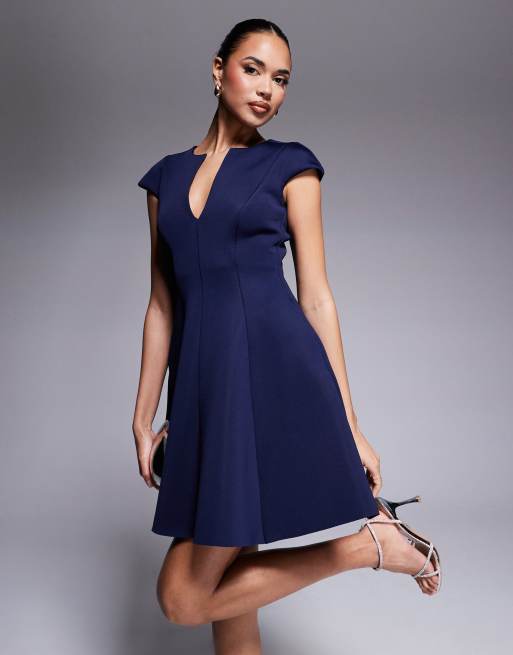Goddiva Cap sleeve plunging v neckline skater mini dress in navy